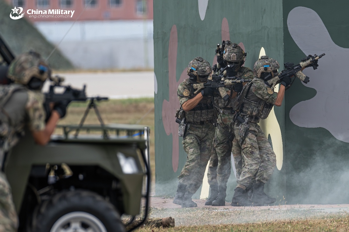 Special operations soldiers assigned to the airborne troops under the Chinese PLA Air Force conduct assault operations in a counter-terrorism operating demonstration during the 2025 aviation open-day activities of the Chinese PLA Air Force and Changchun Air Show in Changchun City, northeast China's Jilin Province. (eng.chinamil.com.cn/Photo by Chen Gongyu)
