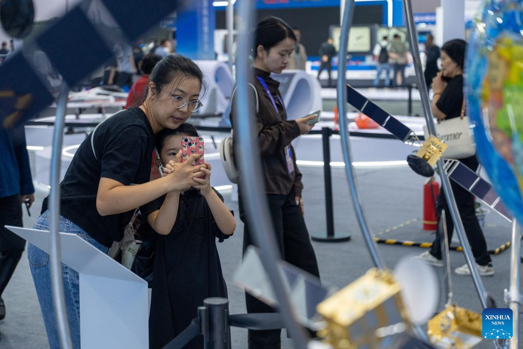 People visit the 13th China (Mianyang) Science and Technology City International High-Tech Expo in Mianyang, southwest China's Sichuan Province, Sept. 27, 2025. The expo opened here on Friday and will last until Sept. 30, with a core exhibition area of 32,000 square meters for science and technology which focuses on electronic manufacturing technology, new display technology, AI technology and low-altitude economy. (Xinhua/Xue Chen)