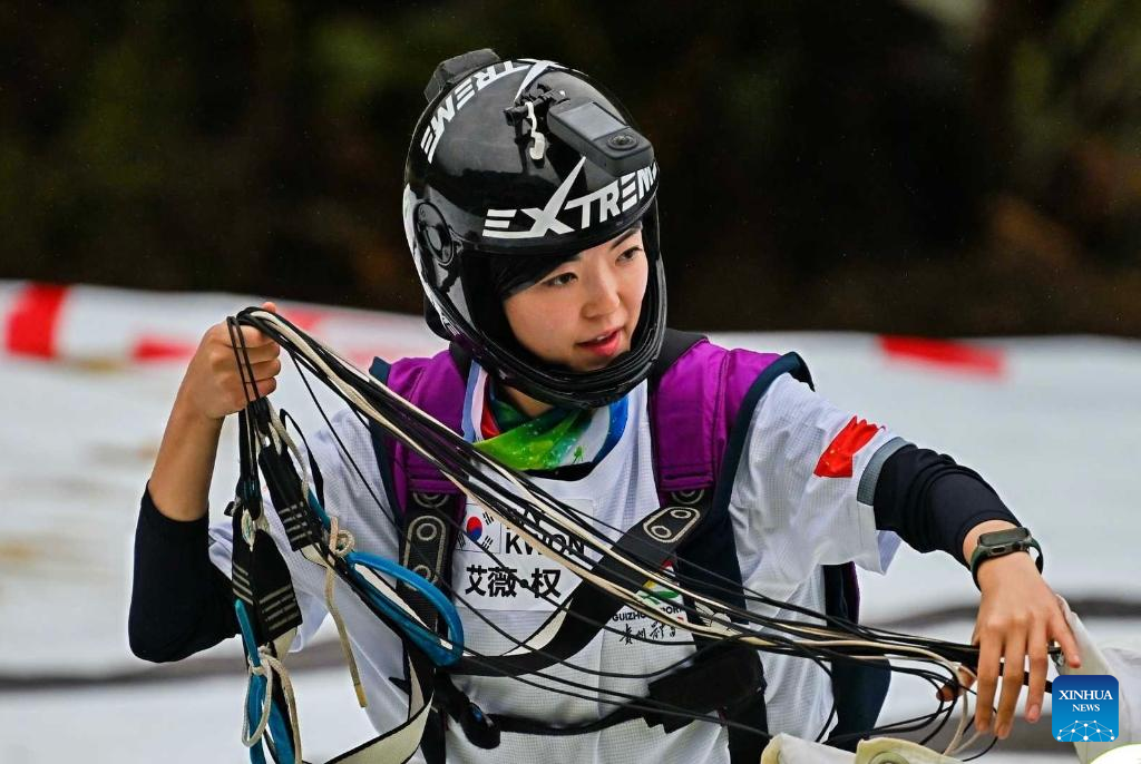 South Korean Jumper Ivy Kwon participates in the 2025 International High Bridge Extreme Sports Invitational Tournament in Anshun City, southwest China's Guizhou Province, Sept. 26, 2025. (Xinhua)