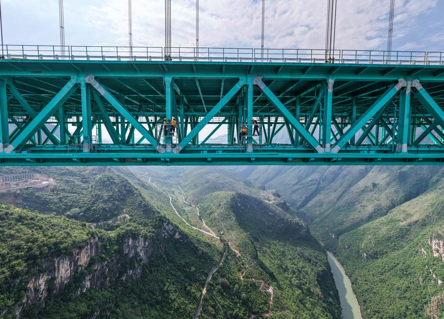Spanning the Huajiang Grand Canyon, dubbed "the Earth's crack," the 2,890-meter-long structure is the latest addition to the rapidly expanding infrastructure network of the world's second-largest economy.