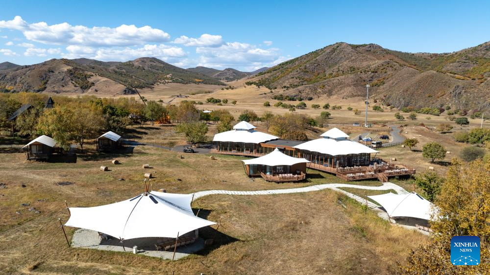 An aerial drone photo taken on Sept. 28, 2025 shows a resort at a scenic area in Horqin Right Wing Front Banner, Hinggan League, north China's Inner Mongolia Autonomous Region. (Xinhua/Bei He)