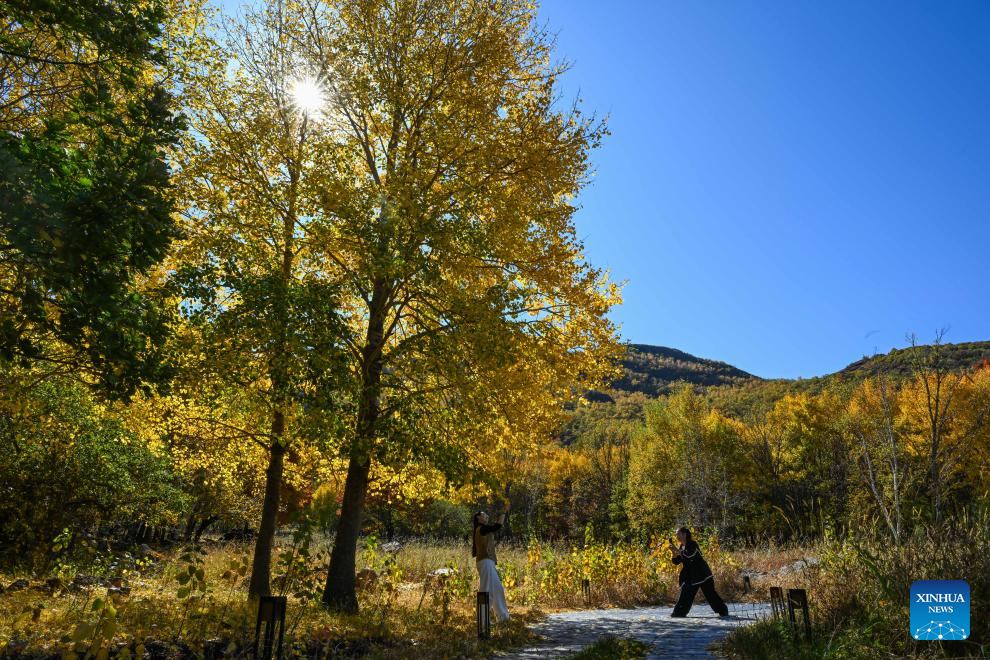 Tourists take photos at a scenic area in Horqin Right Wing Front Banner, Hinggan League, north China's Inner Mongolia Autonomous Region, Sept. 28, 2025. (Xinhua/Bei He)