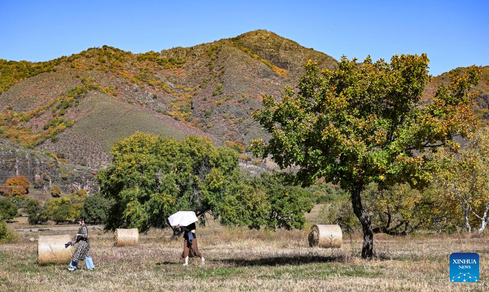 Tourists are pictured at a scenic area in Horqin Right Wing Front Banner, Hinggan League, north China's Inner Mongolia Autonomous Region, Sept. 28, 2025. (Xinhua/Bei He)