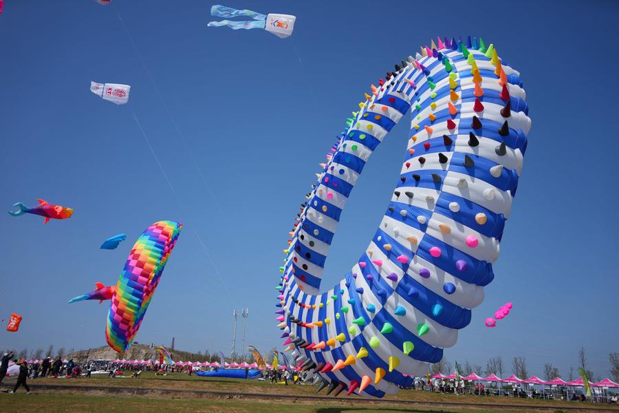Kite fanciers fly kites at the 42nd Weifang International Kite Festival in Weifang, east China's Shandong Province, April 19, 2025. (Xinhua/Xu Suhui)