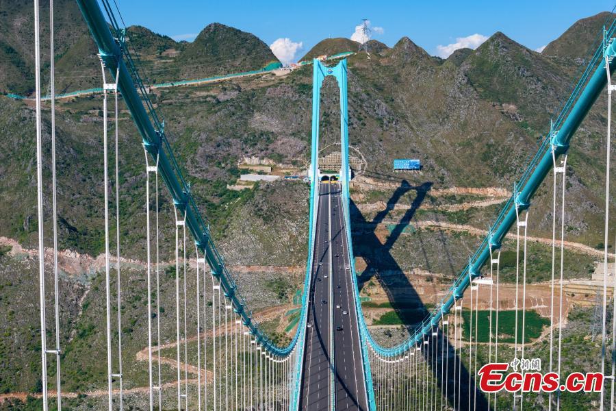 Huajiang Grand Canyon Bridge in southwest China's Guizhou Province opened to traffic on Saturday. The world's tallest bridge has a vertical height of 625 meters from the bridge deck down to the river surface.