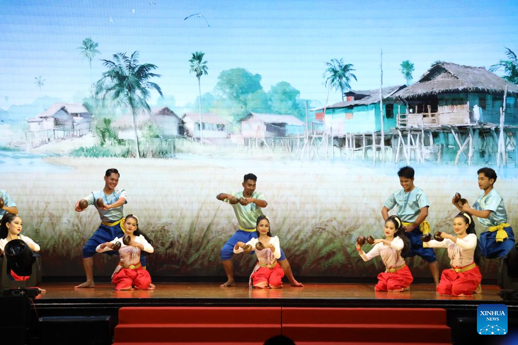 Chinese artists perform at the 2025 China-Cambodia mid-autumn festival friendship gala in Phnom Penh, Cambodia on Sept. 28, 2025. The gala held here on Sunday evening attracted hundreds of revelers. (Photo by Nitola/Xinhua)