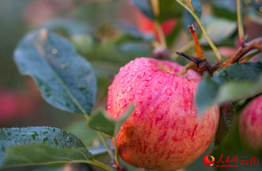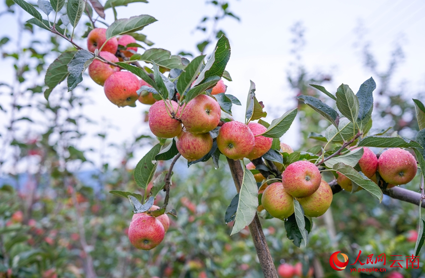 Photo shows tree branches laden with apples at an orchard in Lijiazhuang villager group, Meixi village in Cangshanxi town, Yangbi Yi Autonomous County, southwest China's Yunnan Province. (People's Daily Online/Hu Zunhui)