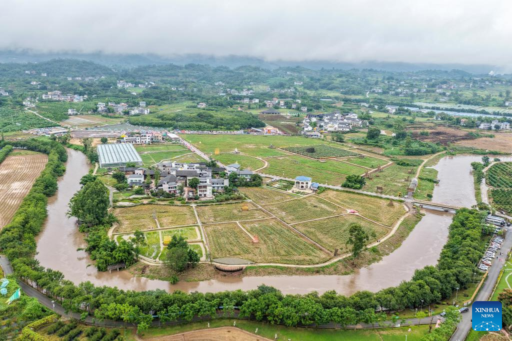 An aerial drone photo taken on Sept. 29, 2025 shows the view of Jiangjun Village, Bishan District, southwest China's Chongqing Municipality. (Xinhua/Tang Yi)