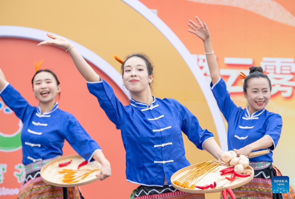 A performance is staged during a rural art fair in Jiangjun Village, Bishan District, southwest China's Chongqing Municipality, Sept. 29, 2025. (Xinhua/Tang Yi)