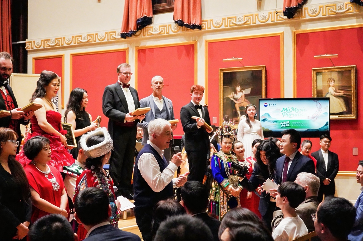 The concert also featured an honor presentation ceremony, with 20 Guizhou musicians and six European musicians awarded the title of "China-Europe Music Ambassadors" in acknowledgment of their role in promoting cultural exchange through music.