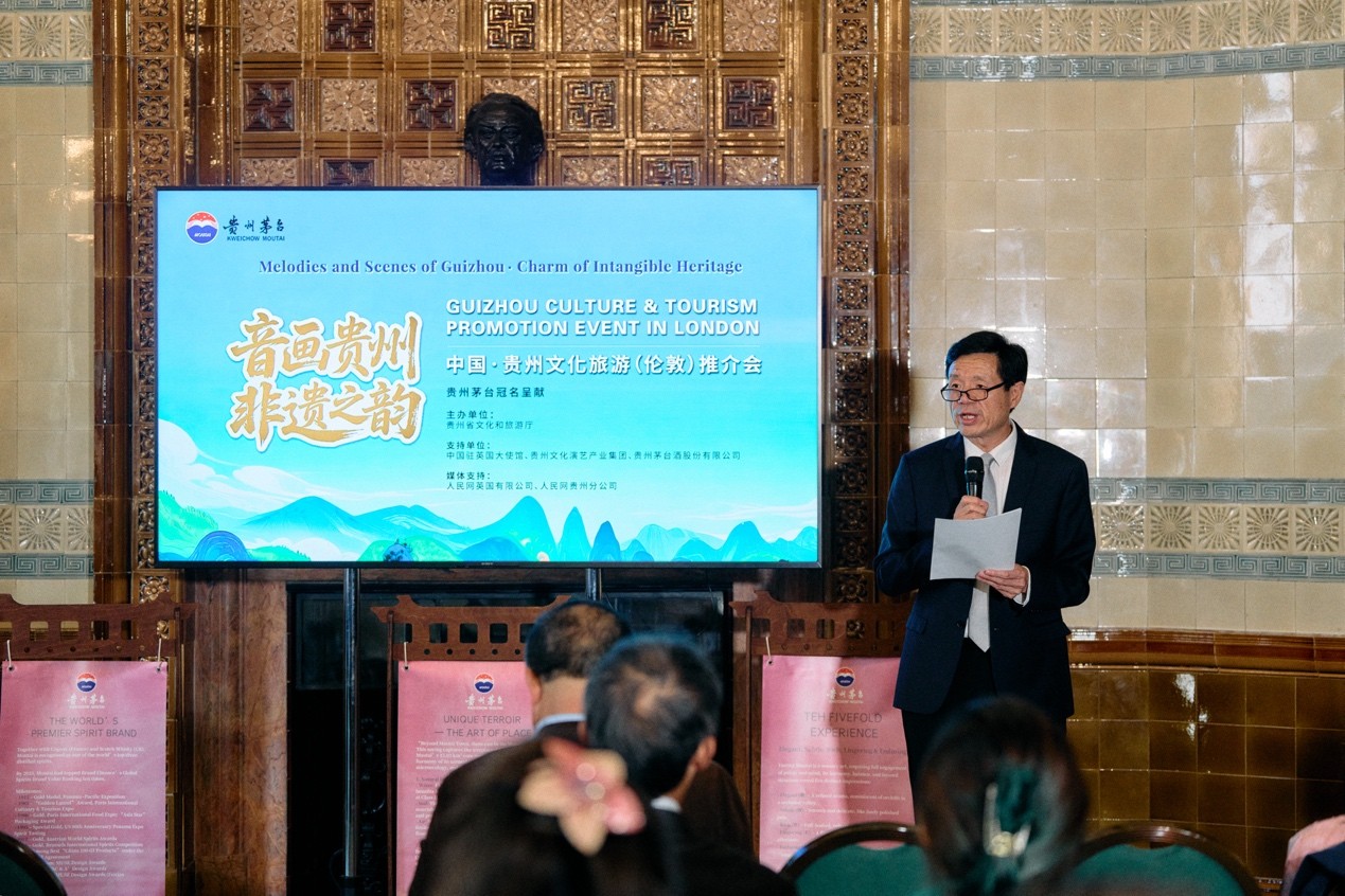 On behalf of Guizhou's cultural and tourism sectors, Jin Zhongbin, deputy general manager of Guizhou Cultural and Performing Arts Industry Group Co., Ltd., delivered a speech. He stated that Guizhou is a magnificent land where nature and culture intertwine. It boasts stunning mountains and rivers, a diverse culture, and 18 indigenous ethnic groups who have created a unique and captivating ethnic culture. He expressed the hope to deepen cooperation with the U.K. in areas such as cultural performances, heritage protection, and tourism investment, and to jointly explore innovative paths for the integration of culture and tourism.