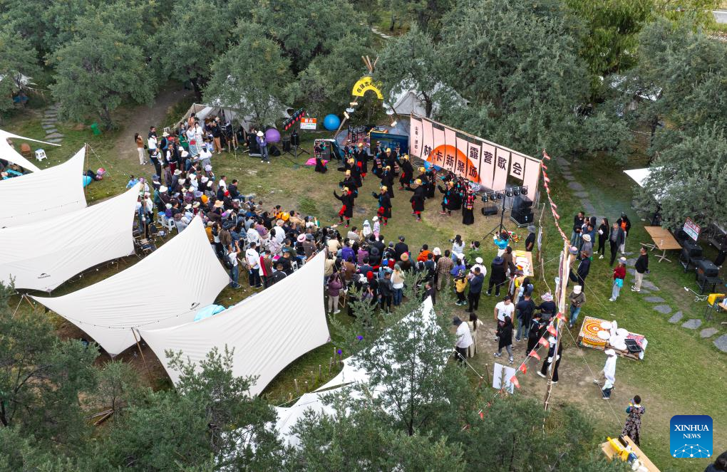 This photo taken on Sept. 13, 2025 shows a "Lingka" festival in Qonggyai County of Shannan, southwest China's Xizang Autonomous Region.(Xinhua/Tenzin Nyida)