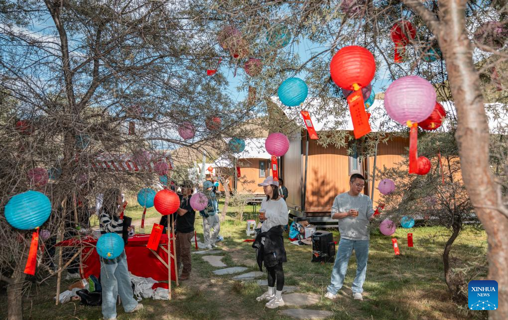 Tourists guess lantern riddles at a "Lingka" festival in Qonggyai County of Shannan, southwest China's Xizang Autonomous Region, on Sept. 13, 2025.(Xinhua/Tenzin Nyida)