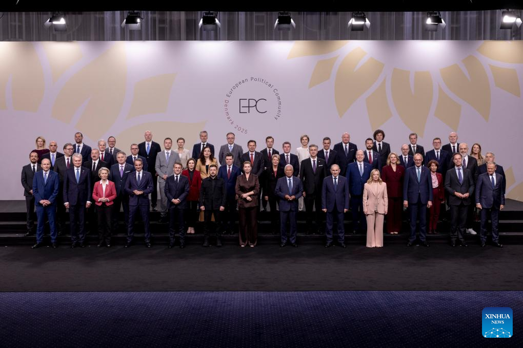 European leaders pose for group photos during the seventh meeting of the European Political Community (EPC) in Copenhagen, capital of Denmark, Oct. 2, 2025. (Photo by Anders Kongshaug/Xinhua)