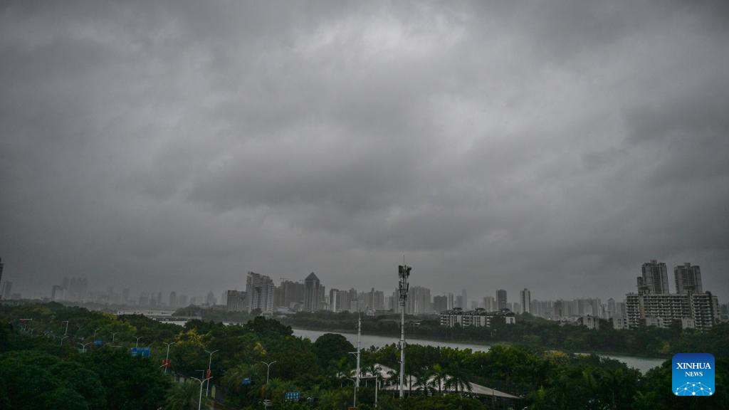 Black clouds and rainfall are pictured in Nanning, south China's Guangxi Zhuang Autonomous Region, Oct. 6, 2025. Typhoon Matmo, the 21st named storm of the 2025 Pacific typhoon season, made landfall along the coast of Guangxi on Monday, bringing strong winds and heavy rainfall. (Xinhua/Zhang Ailin)