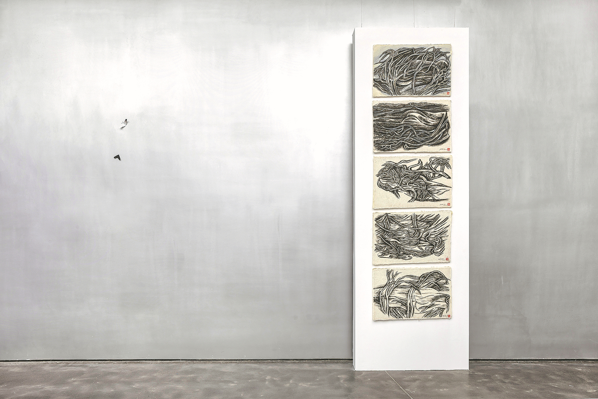 The artwork "Taklamakan: Life Series", which is created by Lin Lecheng, calls for a calm mind in the face of aging. (CHINA DAILY)