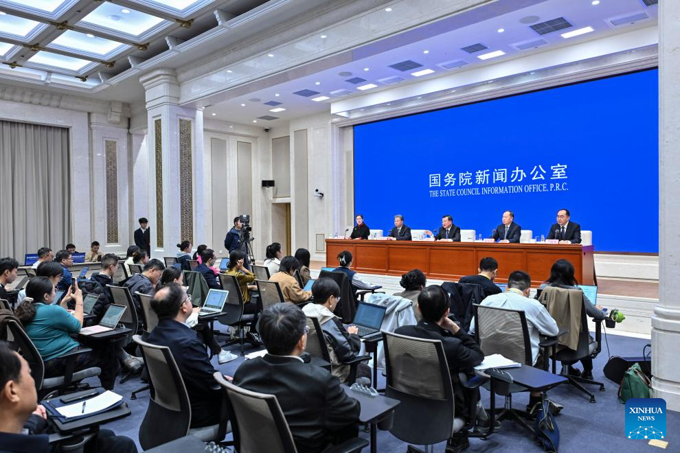 Ni Hong, China's minister of housing and urban-rural development, and Dong Jianguo, Qin Haixiang and Li Xiaolong, all vice ministers of housing and urban-rural development, attend a press conference held by the State Council Information Office (SCIO) on achievements in high-quality housing and urban-rural development during the 14th Five-Year Plan period (2021-2025) in Beijing, capital of China, Oct. 11, 2025. (Xinhua/Li Xin)