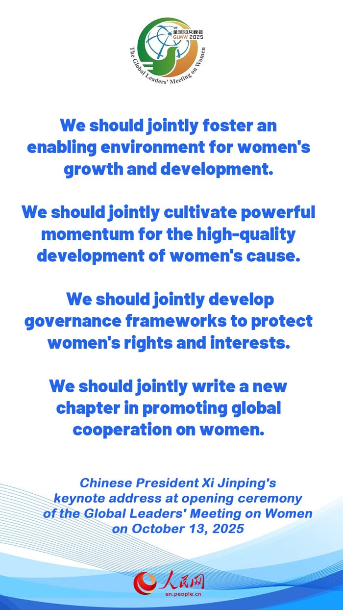 Highlights of Chinese President Xi Jinping's keynote address at opening ceremony of the Global Leaders' Meeting on Women (2)
