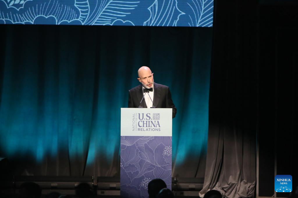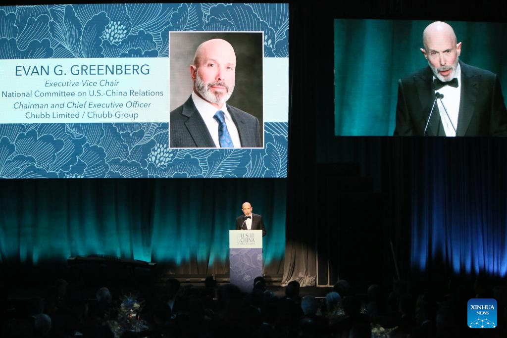 Evan G. Greenberg, executive vice chair of the National Committee on U.S.-China Relations (NCUSCR), speaks at the annual Gala Dinner of the NCUSCR in New York, the United States, on Oct. 14, 2025. Speakers at the annual gala of the National Committee on U.S.-China Relations on Tuesday called for continued dialogue, practical engagement and increased collaboration between Washington and Beijing to stabilize the world's most important bilateral relationship. (Xinhua/Zhang Fengguo)