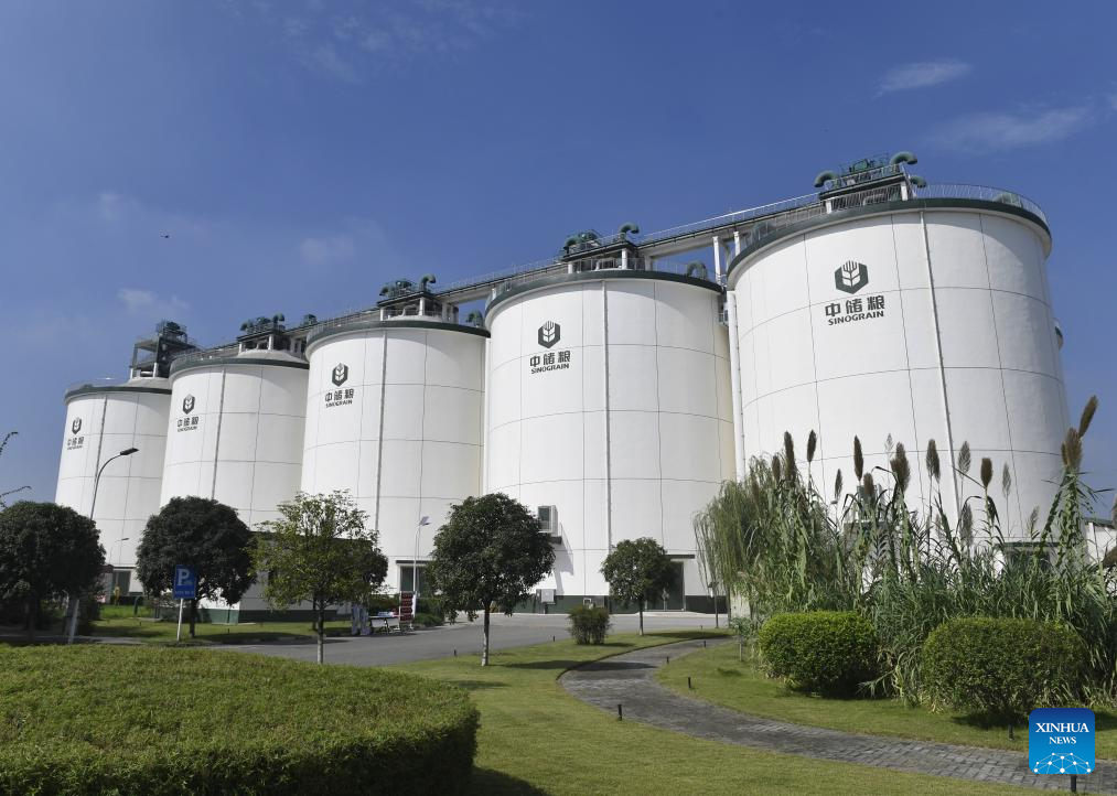This photo taken on Oct. 15, 2025 shows the grain storage facilities at a branch company of China Grain Reserves Group (Sinograin) in Chengdu, southwest China's Sichuan Province.