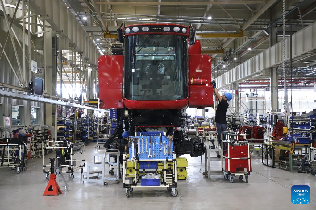 Workers assembles a harvester at the Case New Holland (CNH) industrial plant in Pingfang District of Harbin, northeast China's Heilongjiang Province, Aug. 29, 2024. (Xinhua/Sun Xiaoyu)