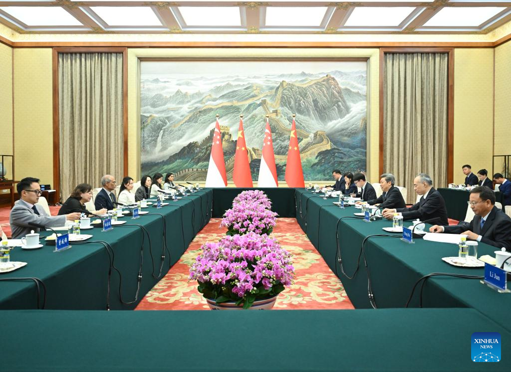BEIJING, Oct. 16 (Xinhua) -- Chen Wenqing, a senior official of the Communist Party of China (CPC), met with Singaporean Minister for Social and Family Development Masagos Zulkifli on Wednesday in Beijing.