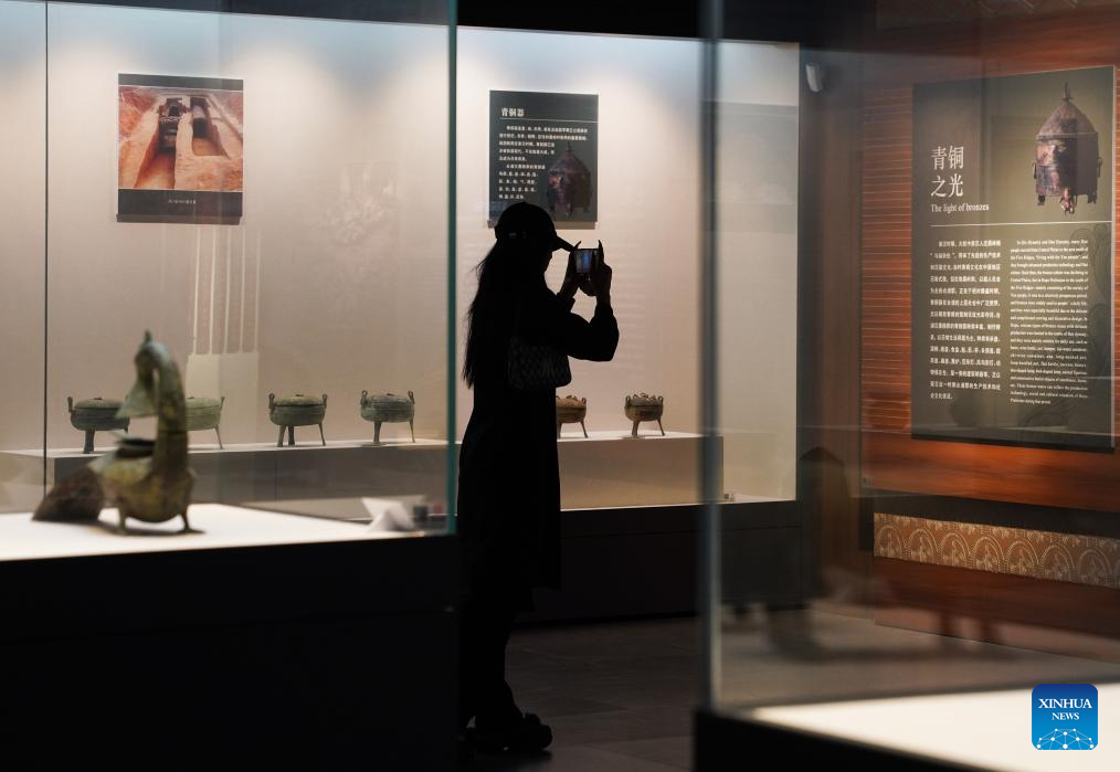 A tourist takes photos at the Han-cultural Museum in Hepu County, south China's Guangxi Zhuang Autonomous Region, Oct. 21, 2025. The Han-cultural Museum of Hepu County, established in 1978, focuses on the historical and cultural display of the Maritime Silk Road during the Han Dynasty (202 B.C.-220 A.D.). The museum covers an area of 13,300 square meters, and houses a total of 5,208 pieces and sets of cultural relics. (Xinhua/Zhou Jiayi)