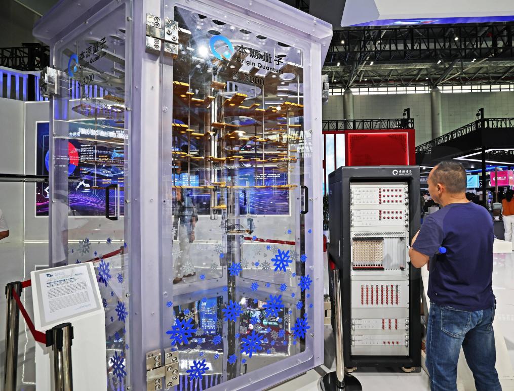 A model of the fourth-generation Origin Wukong superconducting quantum computer is exhibited at the 2025 World Manufacturing Convention in Hefei, east China's Anhui province, Sept. 22, 2025. (Photo/Wang Yushi)