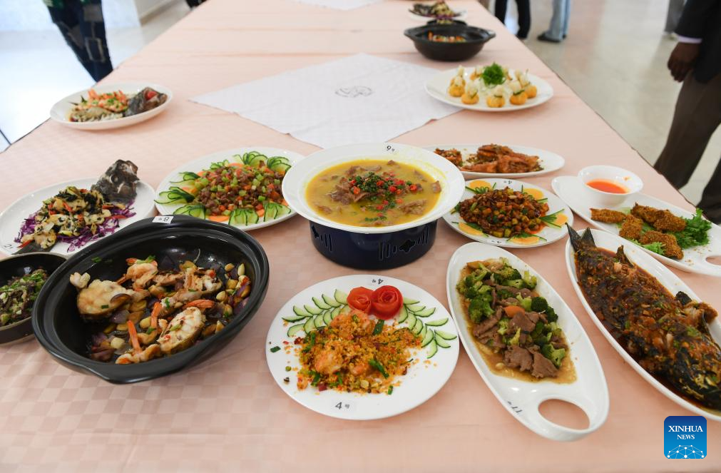 Photo taken on Oct. 30, 2025 shows Chinese dishes prepared by contestants during the 2025 Africa Championship of Chinese Cuisine held in Nairobi, Kenya. The 2025 Africa Championship of Chinese Cuisine, the first of its kind on the continent, was held Thursday in the Kenyan capital Nairobi, highlighting the deepening cultural exchanges between China and Kenya. (Xinhua/Li Yahui)