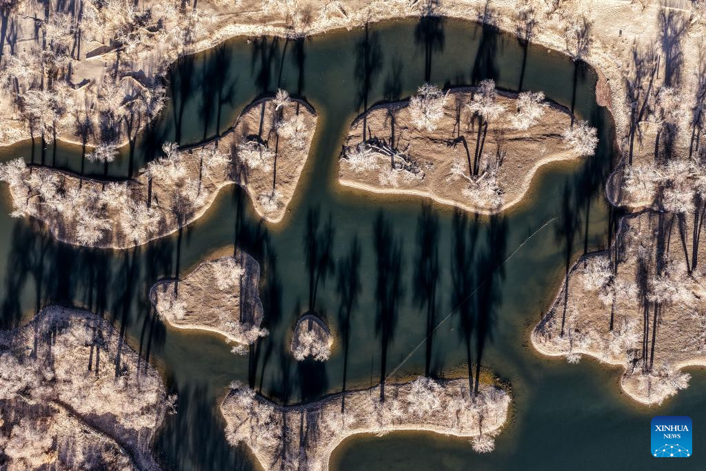 An aerial drone photo taken on Oct. 30, 2025 shows the scenery of a populus euphratica forest in Ejina Banner, north China's Inner Mongolia Autonomous Region. (Xinhua/Lian Zhen)