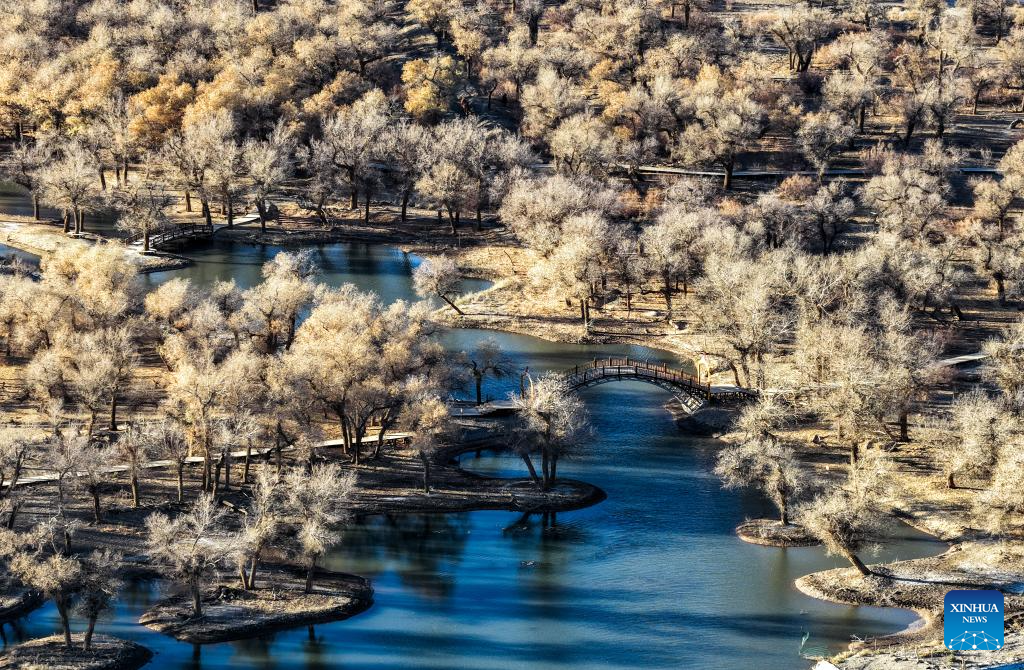 This photo taken on Oct. 30, 2025 shows the scenery of a populus euphratica forest in Ejina Banner, north China's Inner Mongolia Autonomous Region. (Xinhua/Lian Zhen)