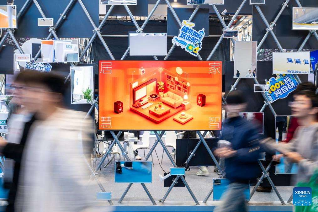 People visit the 2025 International (Wuhan) Intelligent Building Industry Expo at the China Optics Valley Convention and Exhibition Center in Wuhan, central China's Hubei Province, Oct. 31, 2025. With an exhibition area of approximately 20,000 square meters, the expo kicked off here on Friday, drawing exhibitors from over 10 countries and regions. (Xinhua/Wu Zhizun)