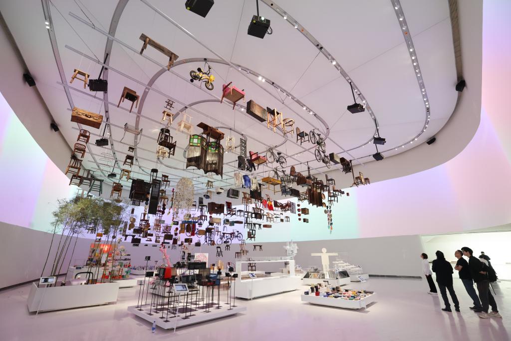 People visit an exhibition at Shenzhen Bay Culture Square in Shenzhen, south China's Guangdong Province, Nov. 1, 2025. The Shenzhen Bay Culture Square began trial operation on Saturday. The landmark square, with a construction area of 188,000 square meters, has nine exhibition halls. (Xinhua/Liang Xu)
