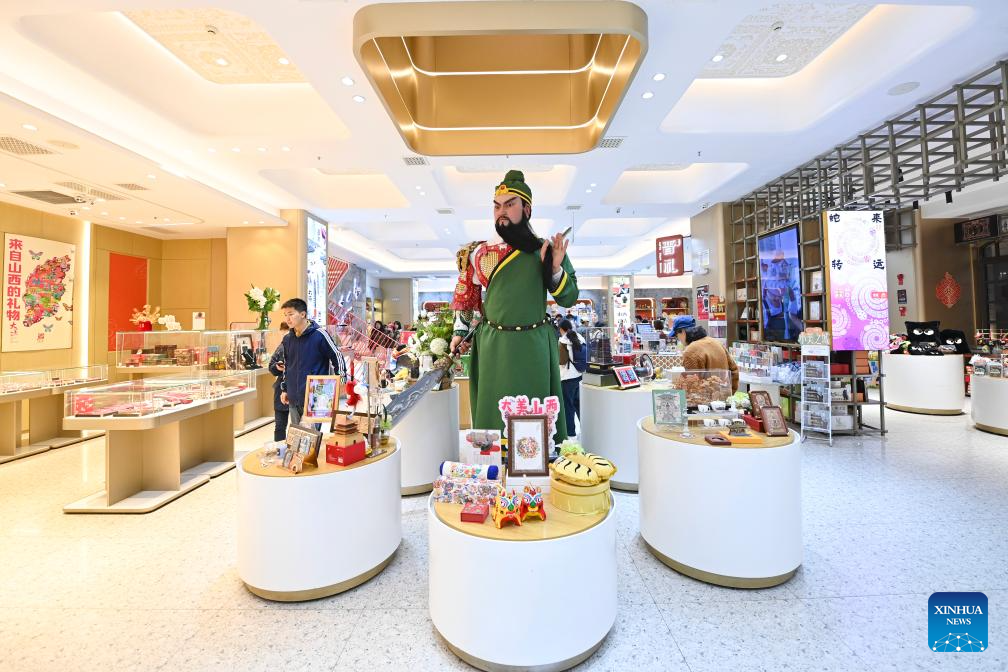 A visitor looks at a product in a shop at Zhonglou Street in Taiyuan, north China's Shanxi Province, Oct. 29, 2025. (Xinhua/Yang Chenguang)