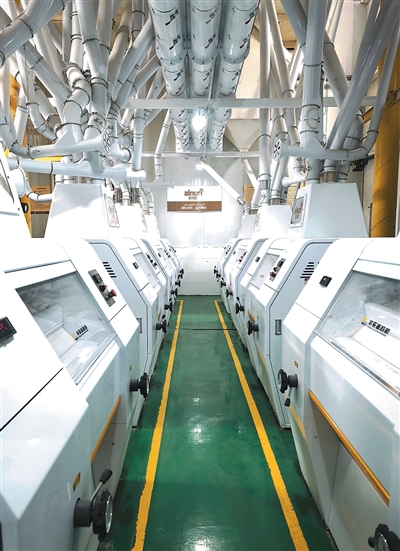 The company's flour mill operates with a high degree of automation, with more than a dozen machines running continuously in sequence.