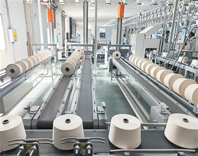 Inside the digitalized workshop of Awati Lihua Textile Co., Ltd. in the county, every stage of traditional cotton textile production is now managed mainly by modern equipment.