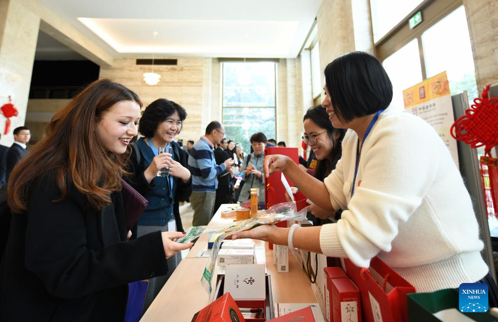 People attend cultural event "TCM Connects the World, Ginseng Perfumes Chongyang -- Art and Tradition of Chinese Medicine" at the Palais des Nations in Geneva, Switzerland, Oct. 29, 2025. The event featured demonstrations of Traditional Chinese Medicine (TCM) exercises, ginseng tasting, herbal sachet making, and wellness activities, offering participants an opportunity to learn about the health philosophy behind TCM. (Xinhua/Lian Yi)