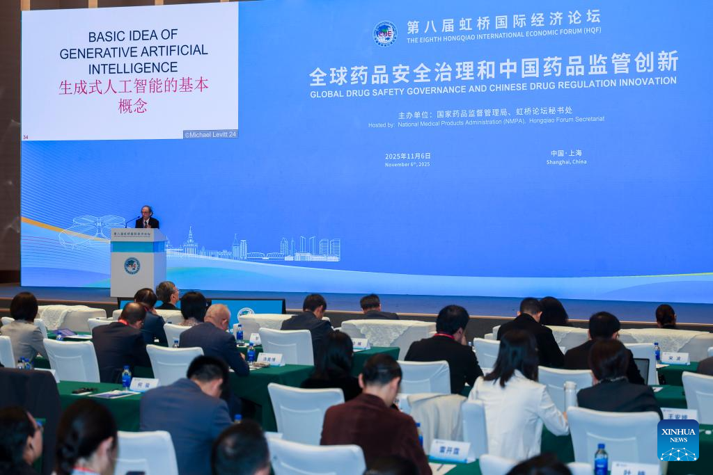 A sub-forum titled "Global Drug Safety Governance and Chinese Drug Regulation Innovation" is held during the 8th Hongqiao International Economic Forum at the National Exhibition and Convention Center (Shanghai) in Shanghai, east China, Nov. 6, 2025. (Xinhua/Wang Xiang)