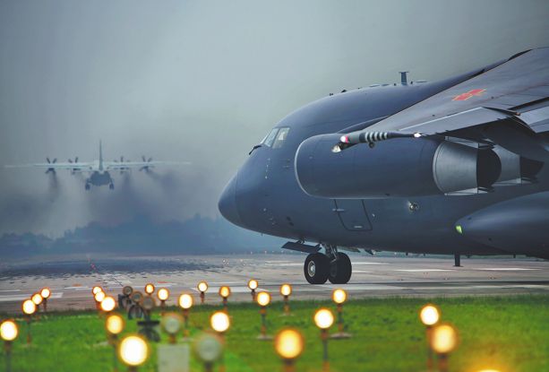 A Y-20 transport aircraft prepares to take off at an airport. LIU CHANG/FOR CHINA DAILY