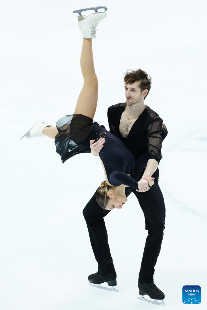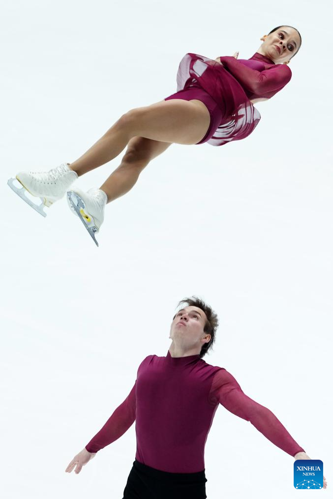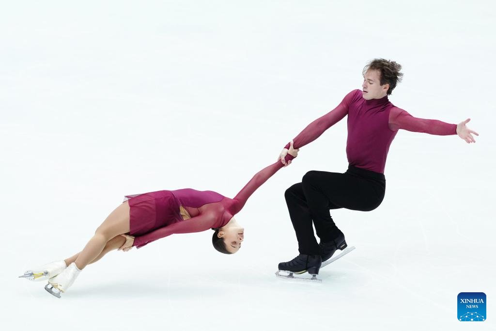 Sara Conti (R)/Niccolo Macii of Italy perform during the pairs skating short program at ISU Figure Skating Grand Prix 2025 in Osaka, Japan, Nov. 7, 2025. (Xinhua/Jia Haocheng)